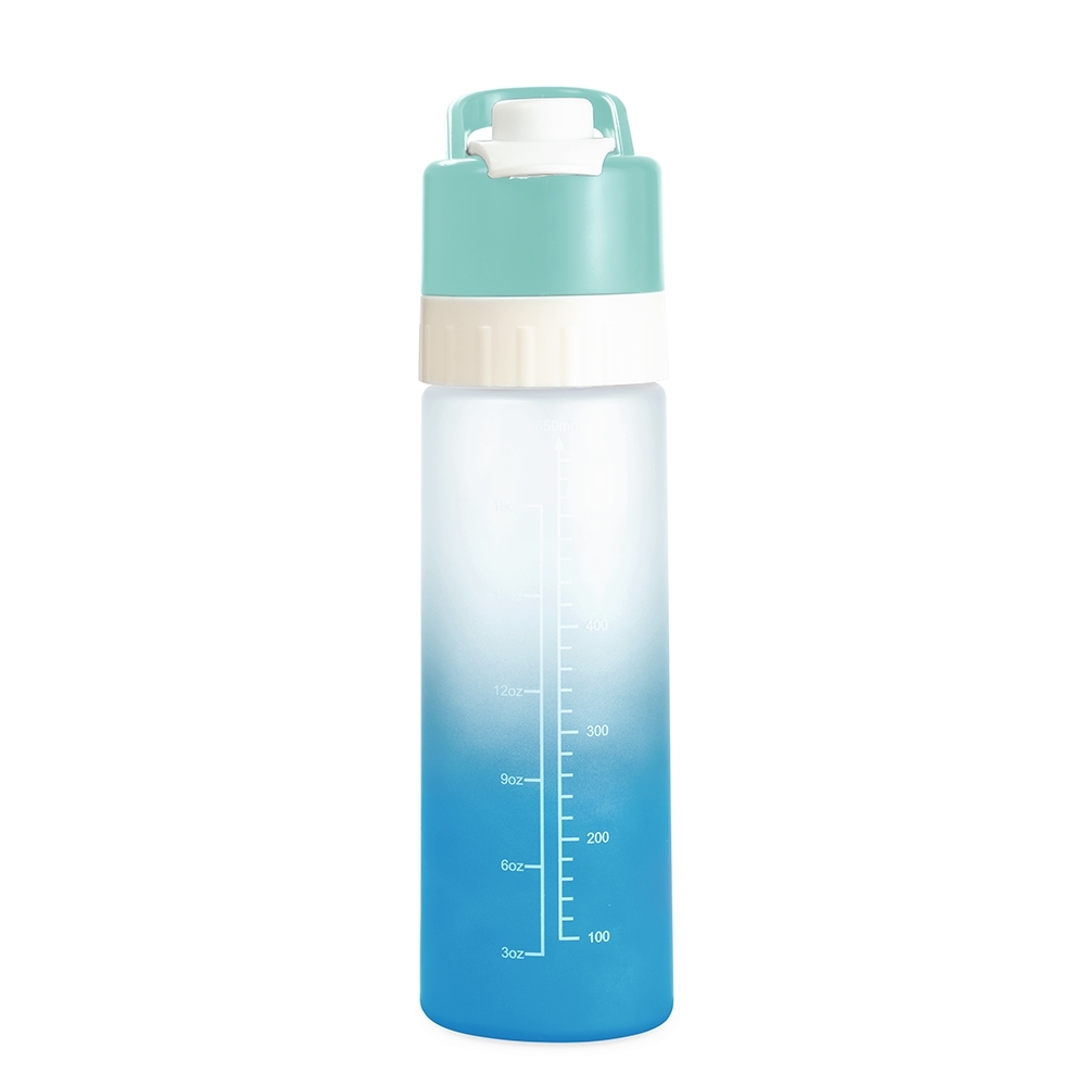 Squeeze em plástico com borrifador e capacidade para até 650ml. Possui marcação de volume, tampa rosqueável com trava de segurança para o bocal, alavanca de acionamento do borrifador e alça fixa para transporte.
