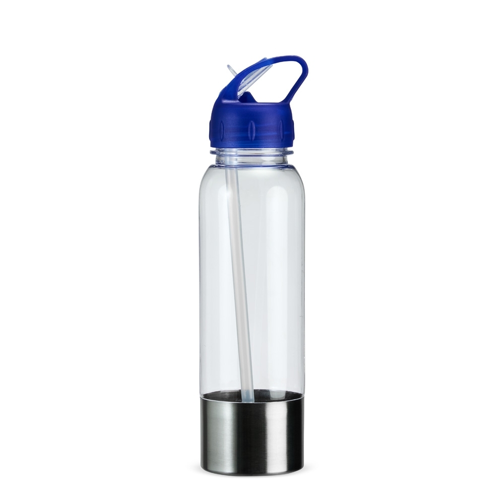 Nossa squeeze combina a leveza e a resistência do plástico com a durabilidade e o toque estético de uma base metálica. Com tampa rosqueável e bico prático, ela ainda acompanha um canudo para facilitar a hidratação em qualquer momento, sem derramamentos. Ideal para acompanhar em todas as atividades, essa garrafa une funcionalidade e design moderno na hora de consumir bebidas.