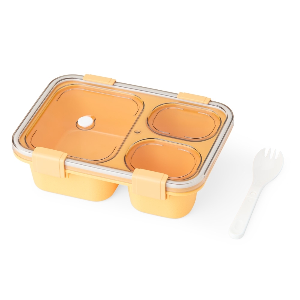 Marmita hermética de 800ml com divisórias e garfo, a solução ideal para as refeições do dia a dia. Feita em PP atóxico e livre de BPA, ela é totalmente segura para alimentos. Equipada com travas de segurança e vedação eficaz, leve-a para qualquer lugar sem riscos de vazamentos. Suas três divisórias internas mantém os sabores separados e controlam as porções, facilitando a montagem de uma dieta equilibrada.